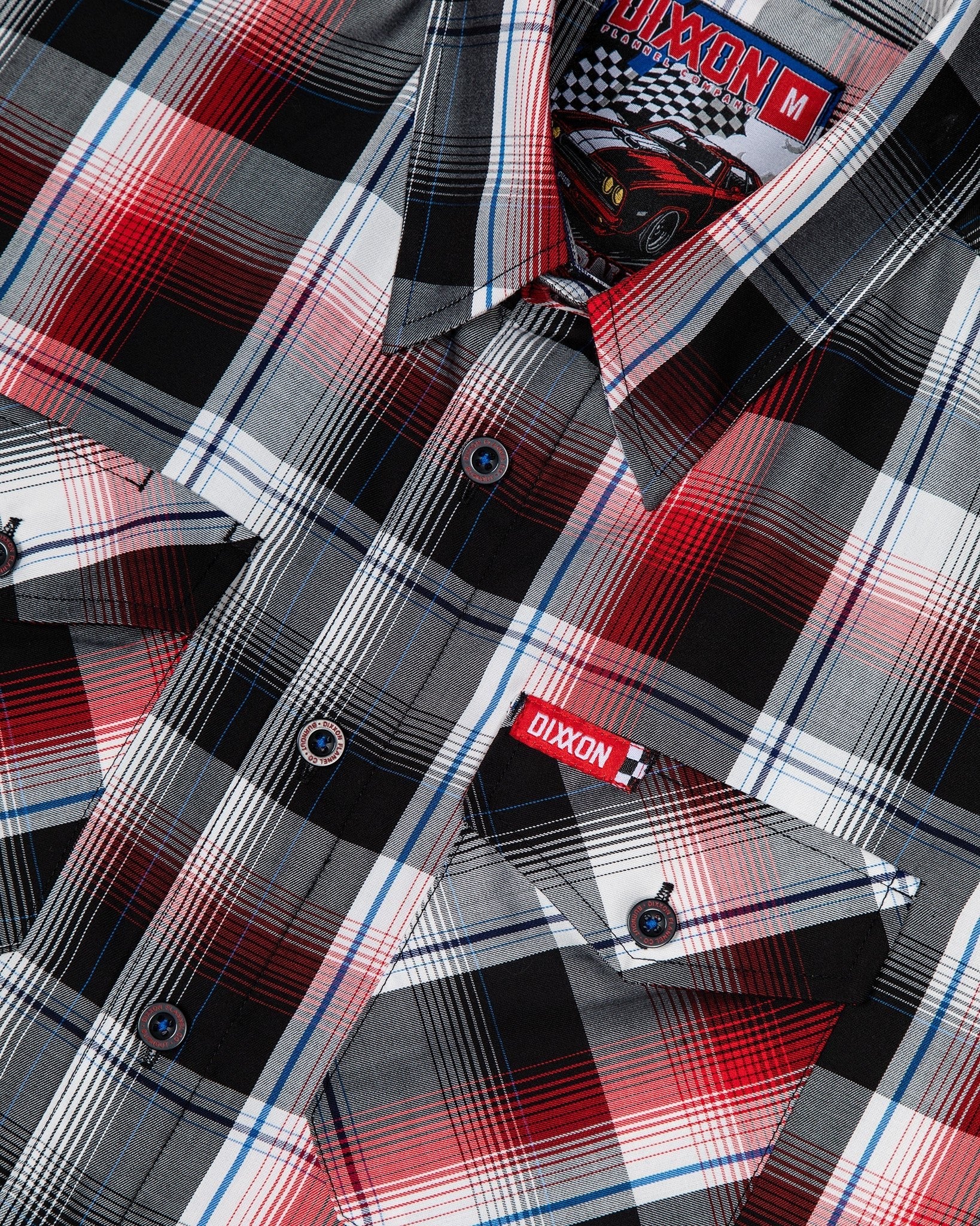 Black Dixxon brand tag on the left chest pocket